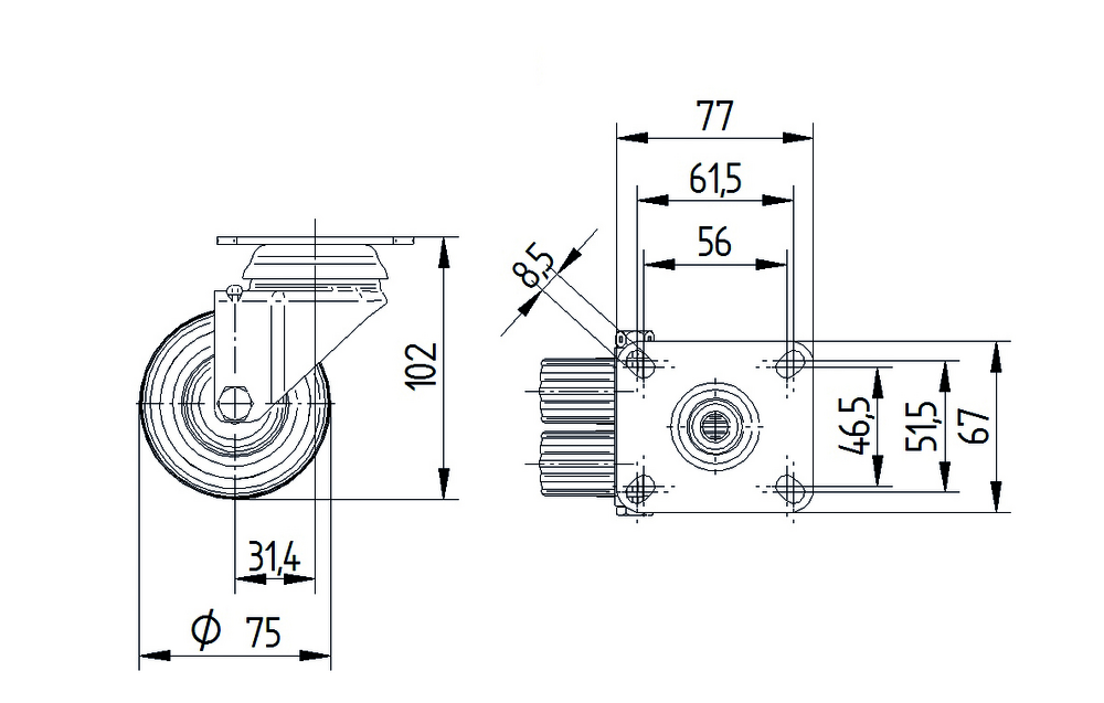 Въртящото се колело Agila twin е оборудвано с правоъгълна плака за монтаж и корпус от стоманен лист, среден, който разполага с д...