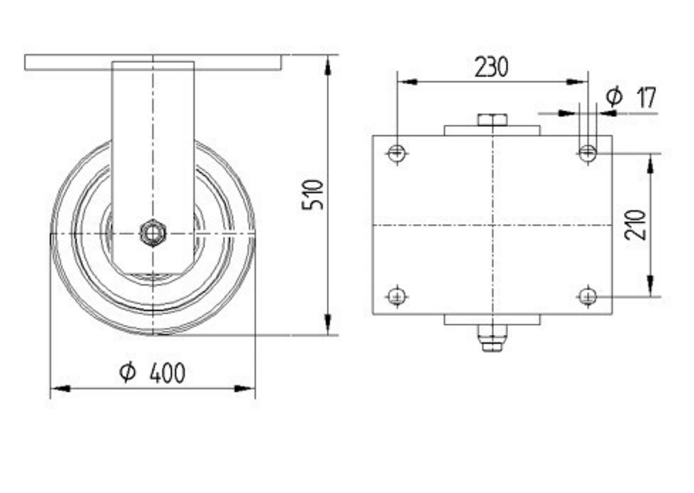 Pevné Kolečko Omikron twin je vybaveno obdélníkovou destičkou pro montáž a robustním pouzdrem z litiny nebo kované litiny, těžká...