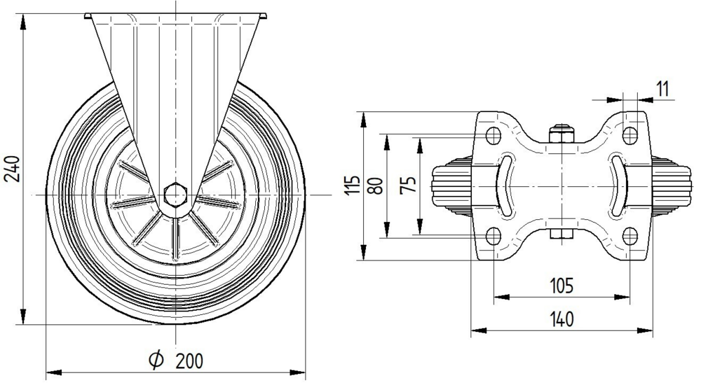 Die Bockrolle Alpha verfügt über eine mittelgroße rechteckige Platte als Befestigung und ein robustes Gehäuse aus schwerem Stahlblech. Das Rad besteht aus einem Polypropylen-Grundkörper mit einer Lauffläche aus thermoplastischem Gummi und ist mit einem Präzisionskugellager ausgestattet. Der Raddurchmesser beträgt 200 mm bei einer Gesamthöhe von 240 mm. Die dynamische Tragfähigkeit liegt bei 250 kg bei einer Geschwindigkeit von 4 km/h, während die statische Belastbarkeit 500 kg erreicht. Diese vielseitige Rolle eignet sich für zahlreiche Anwendungsbereiche wie Automobil-OEM, Speisewagen und Mahlzeitenauslieferungssysteme, Containerbau, elektronische Systeme und Reinraumtechnik, Brandbekämpfungstechnik, Maschinenbau, Postlogistiksysteme, Produktions- und Plattformwagen, Rollkäfige, Werkzeugschränke, Transportequipment, Abfallentsorgungsanlagen sowie Werkbänke.