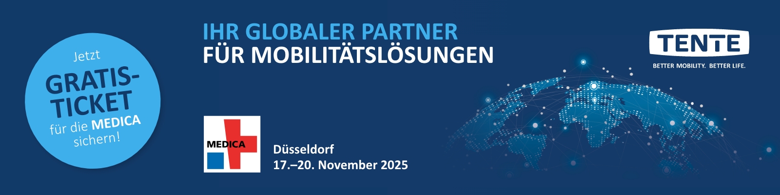 Wir haben für Sie Ihr kostenfreies Ticket für die diesjährige Fachmesse Medica in Düsseldorf reserviert und laden Sie ein, unsere wegweisenden Mobilitätslösungen zu entdecken - vom 17. bis 20. November 2025 in Halle 12, Stand A53. Was erwartet Sie? Erstklassige Rollen für Krankenhausbetten, OP-Roboter, medizinische Geräte und Möbel, die perfekt auf Ihre Herausforderungen abgestimmt sind.