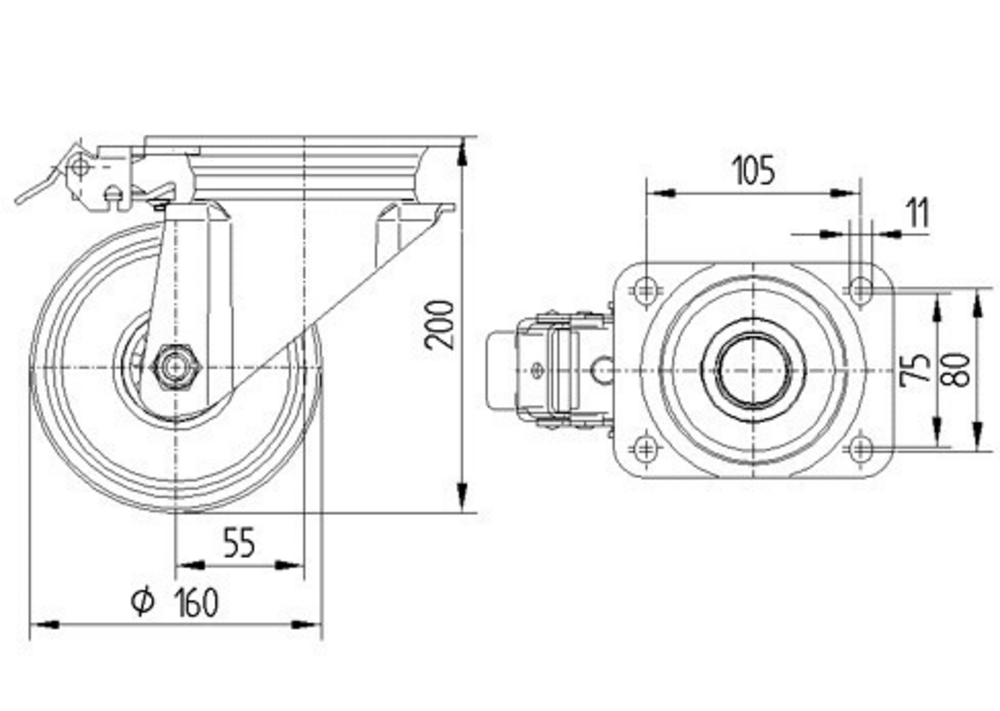 Lenkrolle mit Richtungsfeststeller 160 mm