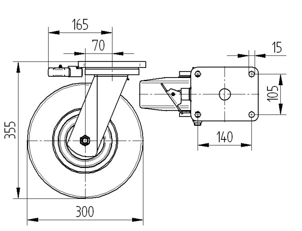 Lenkrolle mit Richtungsfeststeller 300 mm