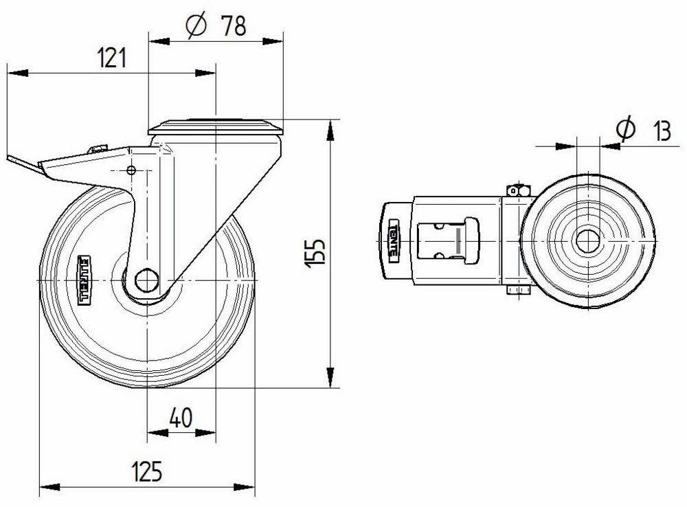 Lenkrolle mit Totalfeststeller 125 mm