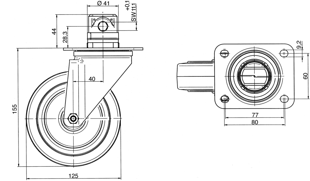 Die maßgeschneiderte Lösung Alpha verfügt über eine rechteckige Platte mit Zentralverriegelungsfunktion als Befestigungselement. Das Gehäuse besteht aus schwerem Stahlblech und ist mit einem zweireihigen Kugelbahn-Schwenklager ausgestattet. Das Rad weist einen Durchmesser von 125 mm auf, wobei der Radkörper aus Polyamid gefertigt ist und mit einem spurlosen, vulkanisierten Elastikreifen ausgestattet ist, der über ein Rollenlager verfügt. Die Gesamthöhe der Rolle beträgt 155 mm. Die dynamische Tragfähigkeit liegt bei 250 kg bei einer Geschwindigkeit von 4 km/h, während die statische Belastbarkeit 500 kg erreicht. Diese Transportrolle eignet sich für vielfältige Anwendungen wie Automobil-OEM, Speisewagen, Containerbau, Reinraumtechnik, Brandschutztechnik, Maschinenbau, Postlogistik, Produktionswagen, Rollkäfige, Werkzeugschränke, Transportequipment, Abfallentsorgung und Werkbänke.