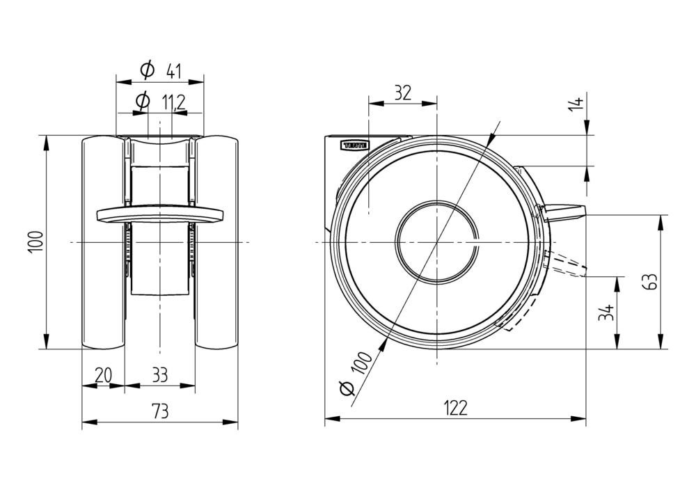 Die Linea light ist eine Lenkrolle mit Radfeststeller, ausgestattet mit einem Blindloch für Bundstift B10 als Befestigungssystem...