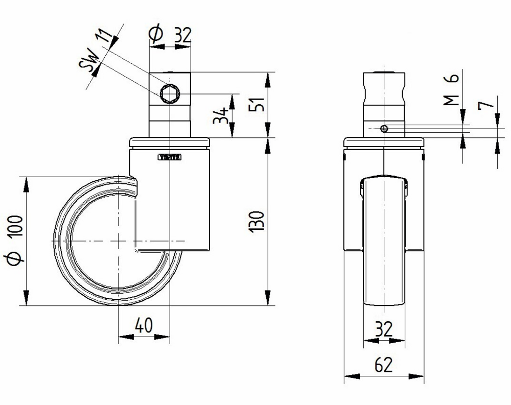 Lenkrolle mit Zentral-, Total- oder Richtungsfeststeller 100 mm