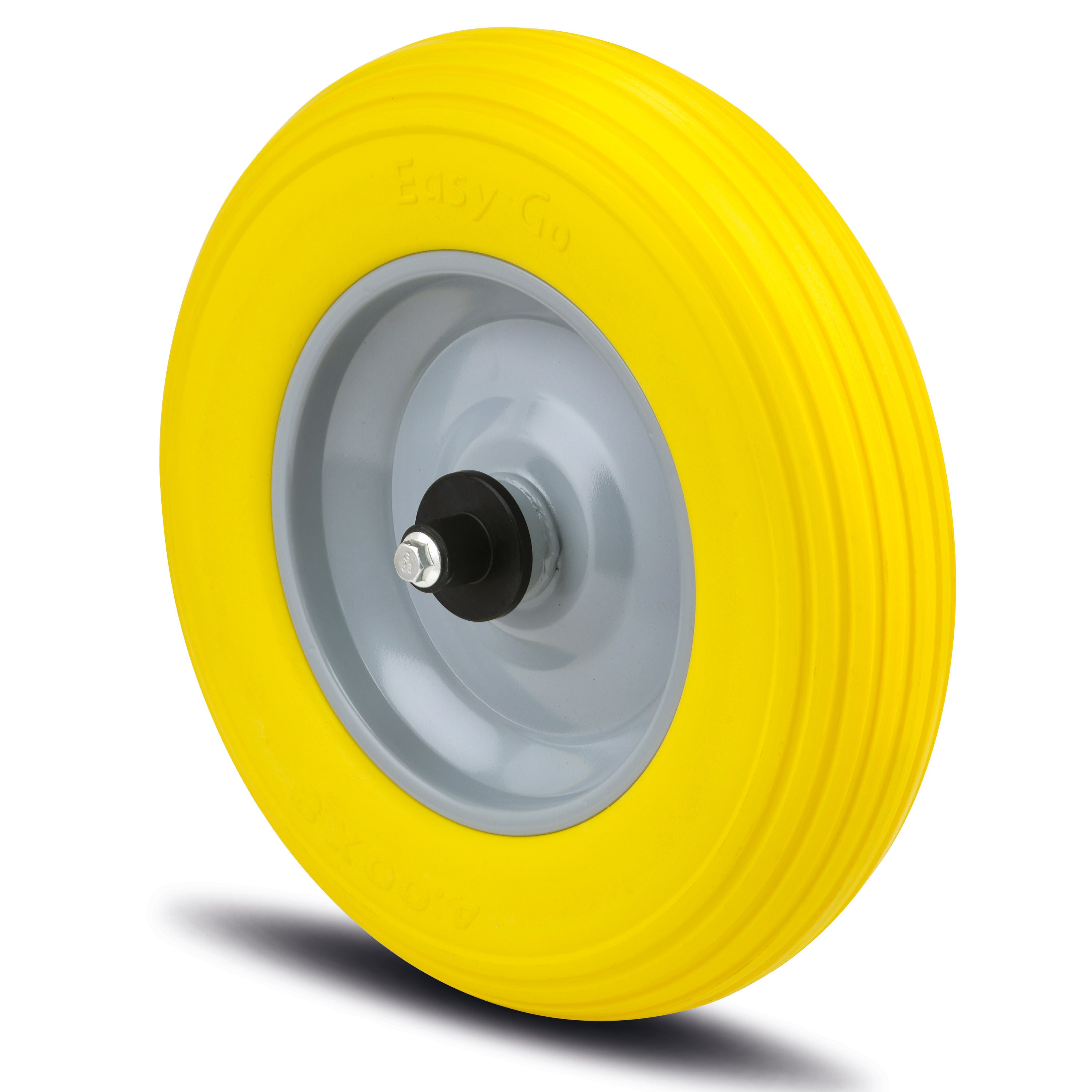 Das Maxtech Rad aus Stahlblech verfügt über einen Durchmesser von 400 mm und eine Laufflächenbreite von 90 mm aus geschäumtem Po...