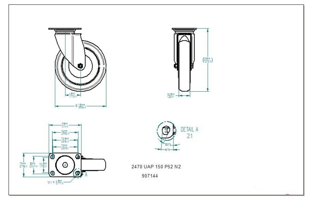 The Agila swivel castor features a rectangular plate fitting with US-bolt hole spacing for standardised mounting applications. T...