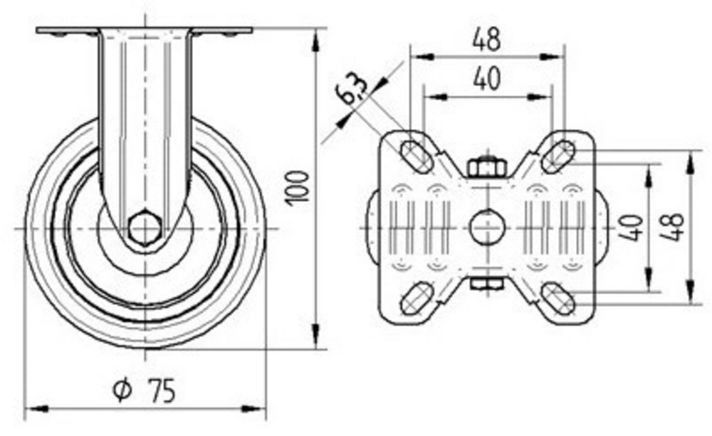 Fixed castor 75 mm