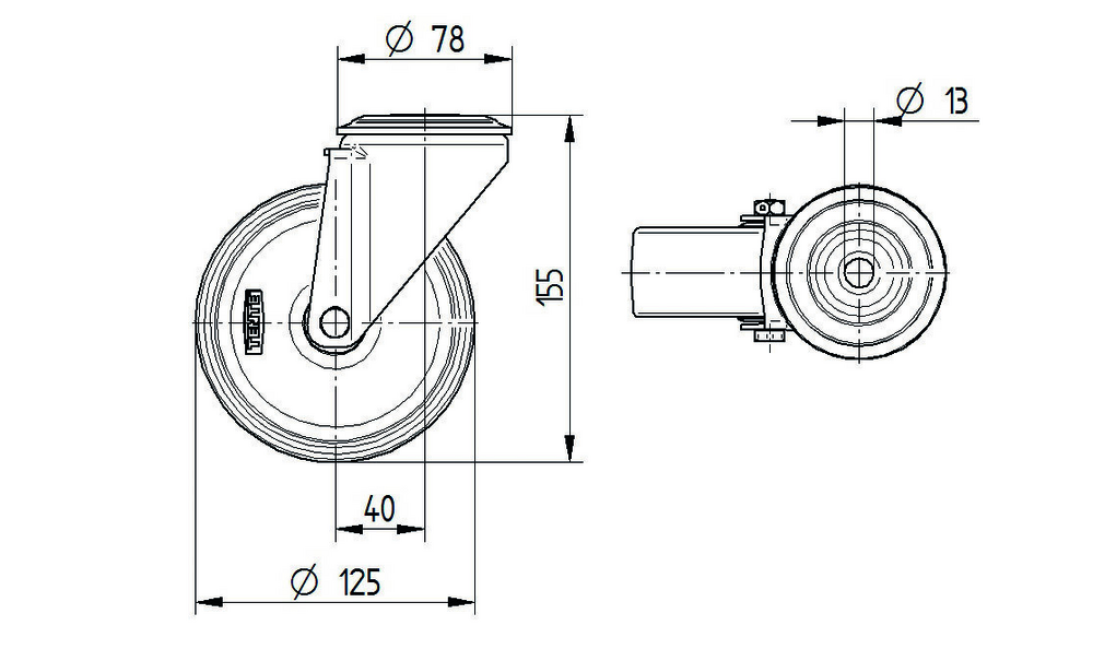 Swivel castor 125 mm