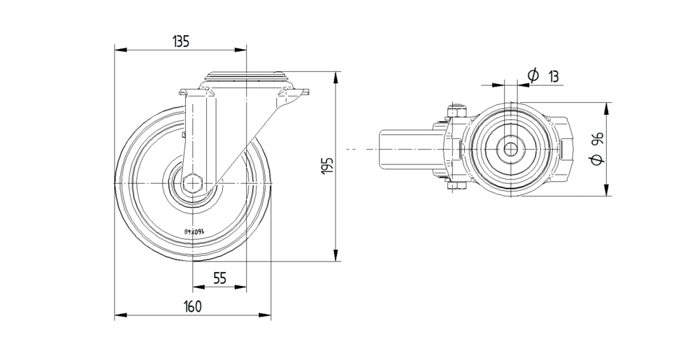 Swivel castor 160 mm