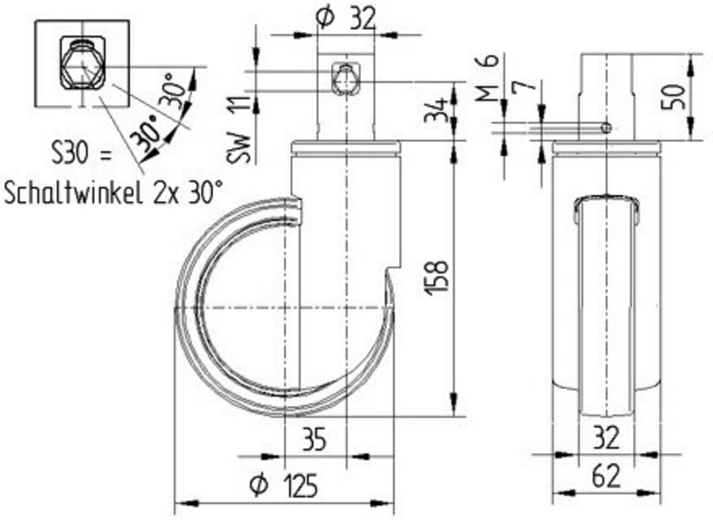 The Integral swivel castor with central, total lock features a stem with cam hole for profile bars, short version fitting, with ...