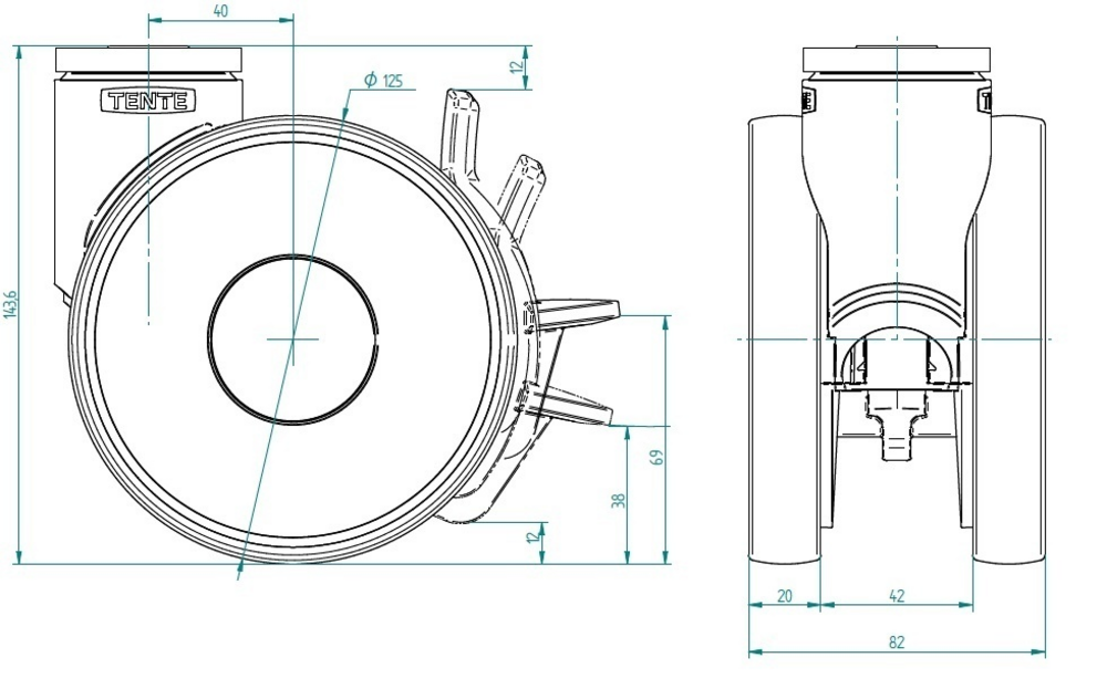 The Linea swivel castor with total lock features a bolt hole fitting for secure mounting applications. The housing is constructe...
