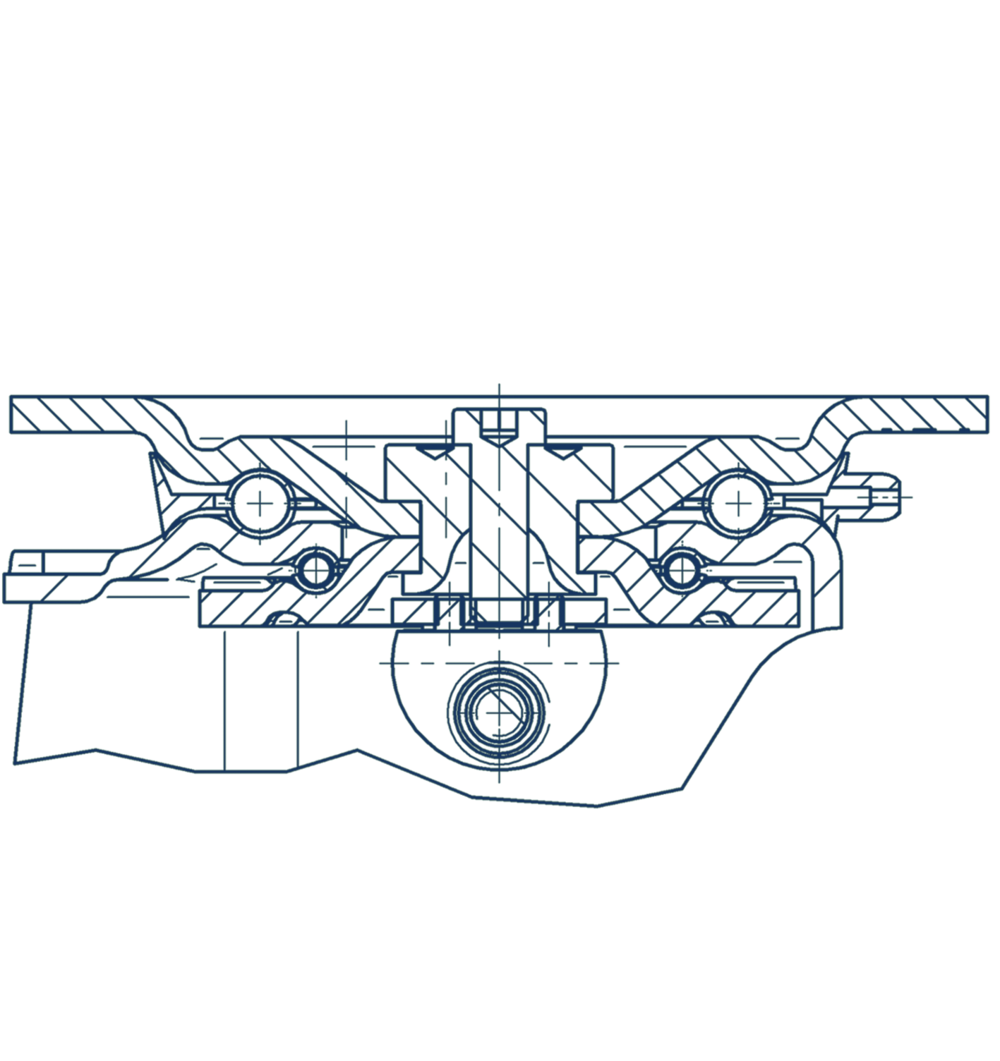 Swivel bearings lubricated with long-life grease and fitted with grease nipple for easy maintenance.