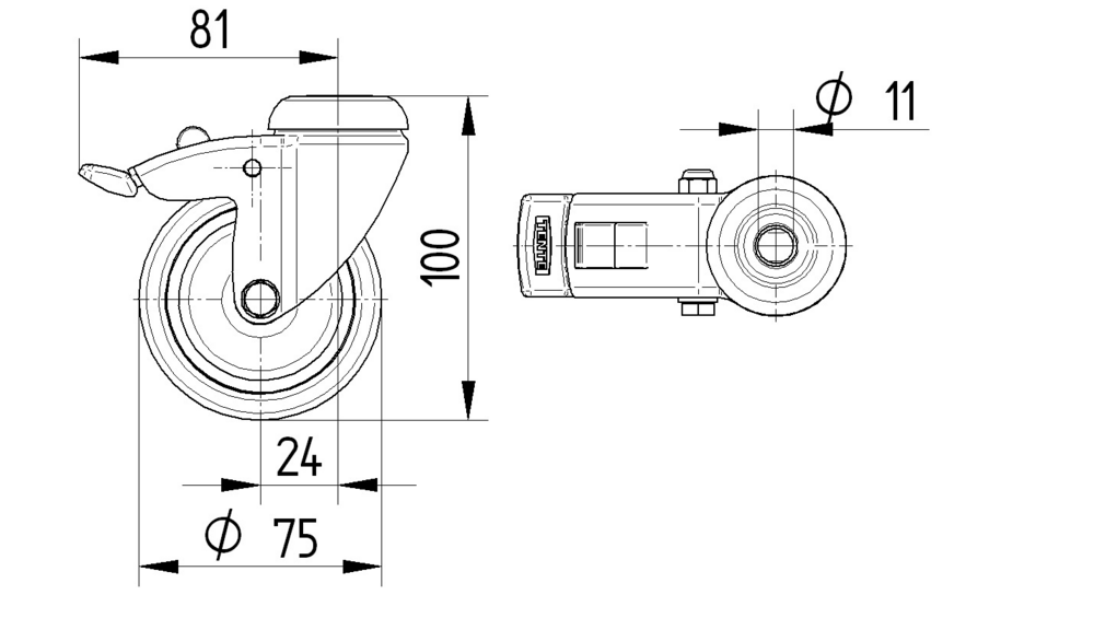 The Agila stainless swivel castor with total lock features a bolt hole fitting system that allows castors to be mounted with sta...