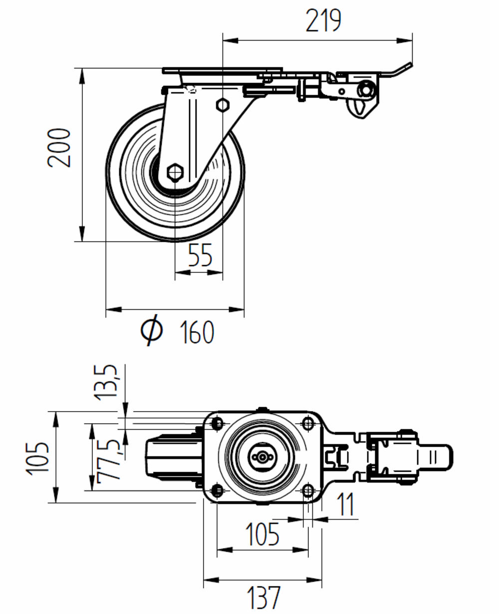 Swivel castor with directional lock 160 mm