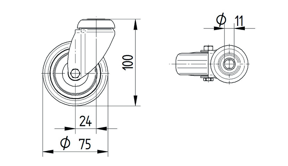 Swivel castor 75 mm