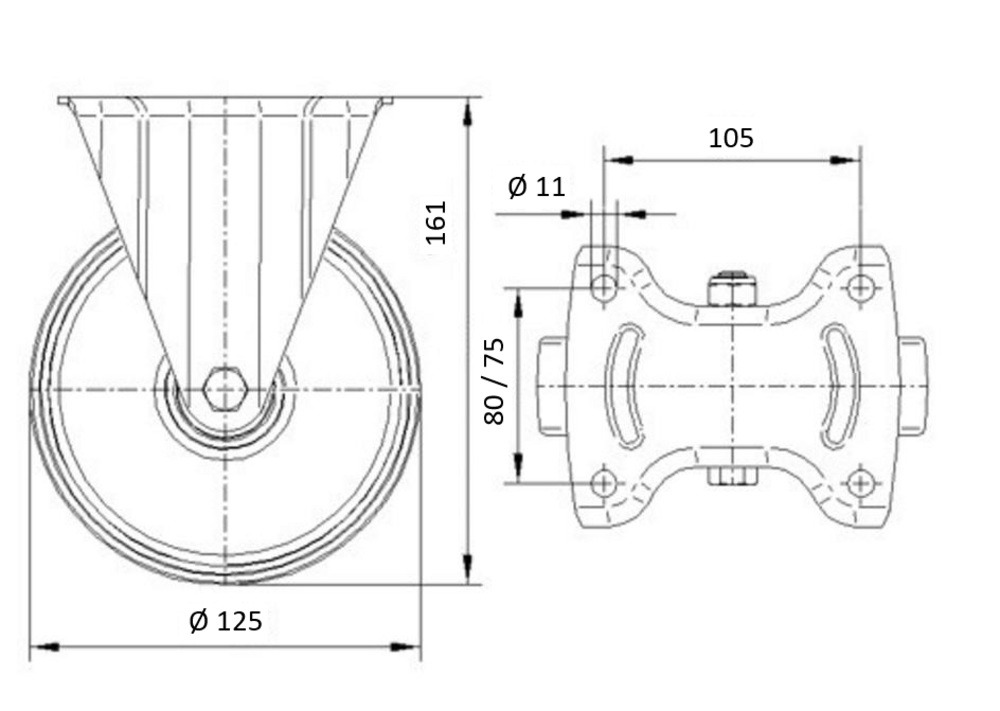 The Alpha fixed caster features a rectangular plate fitting for secure mounting applications. The housing is constructed from he...