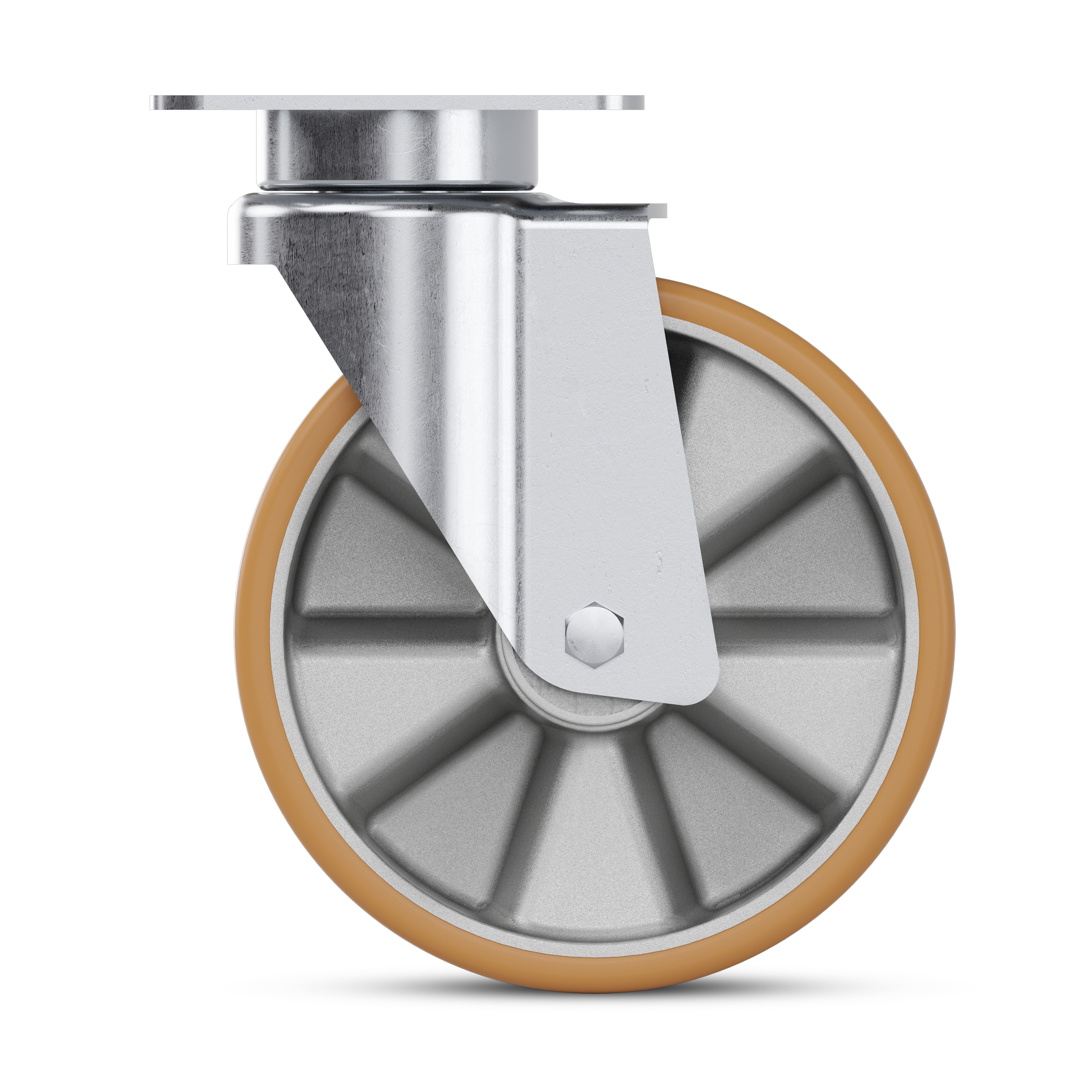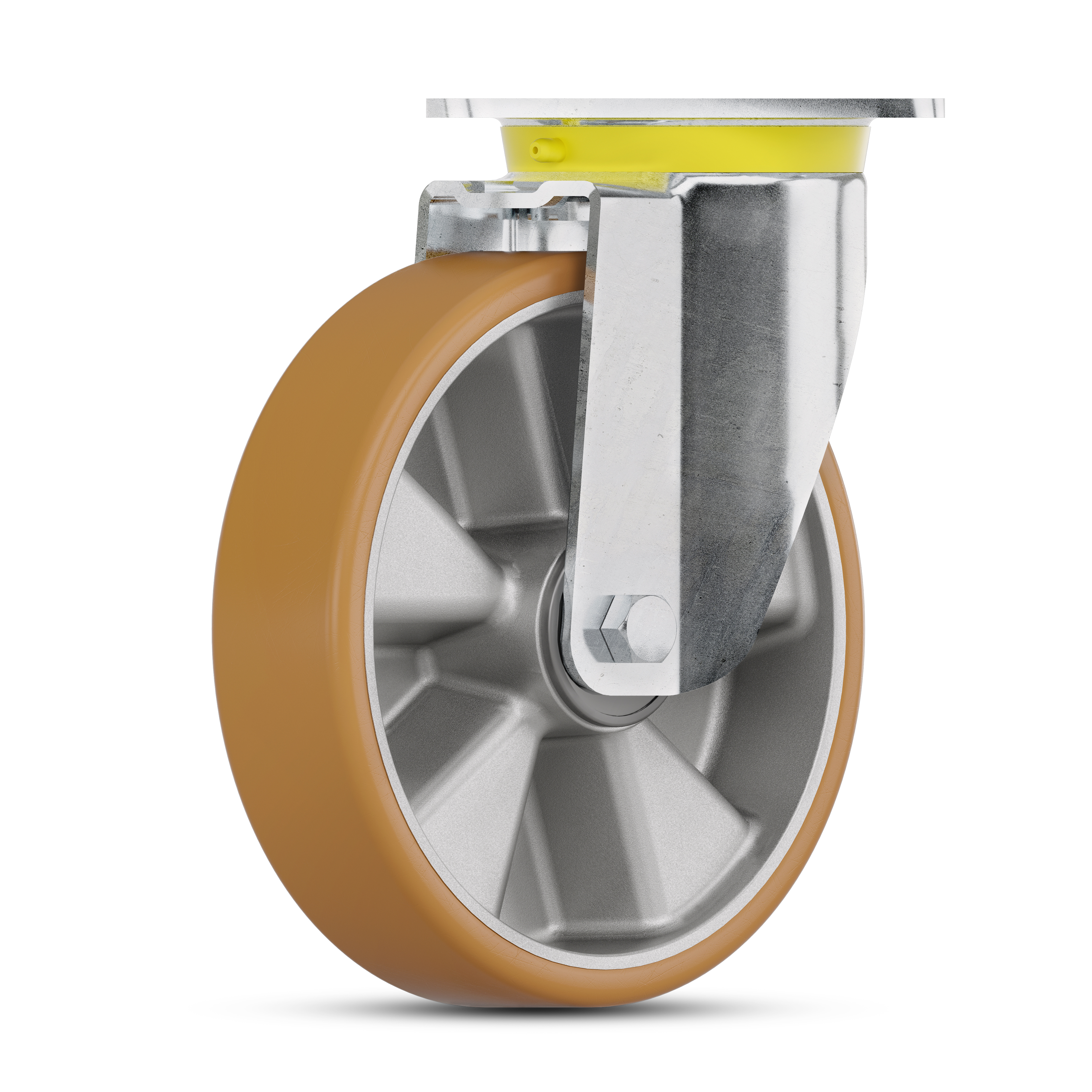 Zeta guarantees easy steering by two hardened ball races in the swivel head which are lubricated with long-life grease and fitted with a grease dispenser for easy maintenance. The swivel bearing features a dust ring for continuous, uninterrupted movement. Our heavy duty caster Zeta can be equipped with different types of wheels: extra soft wheels with good shock-absorbing and noise-reducing properties, wheels with optimized roll resistance to lighten the load for the user, as well as wheels with reduced abrasion for minimized cleaning efforts.