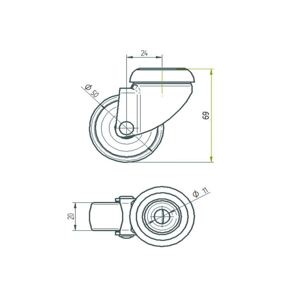 Swivel castor 1.97 in