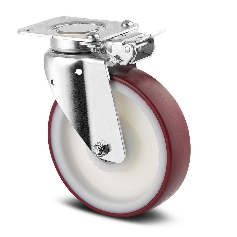 The Delta swivel caster with directional lock features a rectangular plate fitting for secure mounting applications. The housing...