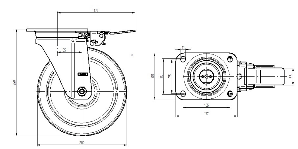 Swivel castor with directional lock 7.87 in