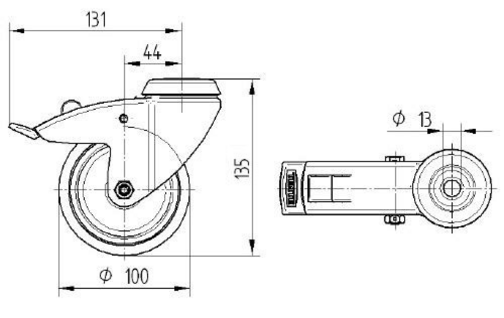 The Agila is a swivel caster with total lock functionality, designed for industrial applications requiring secure positioning. T...