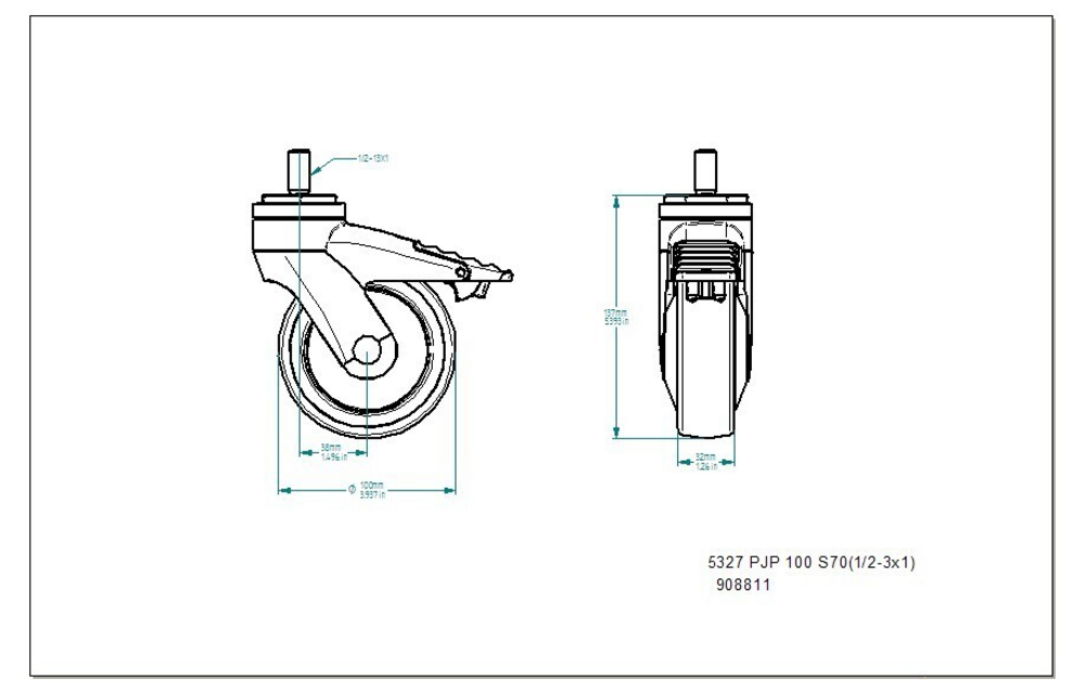 Swivel castor with total lock 3.94 in