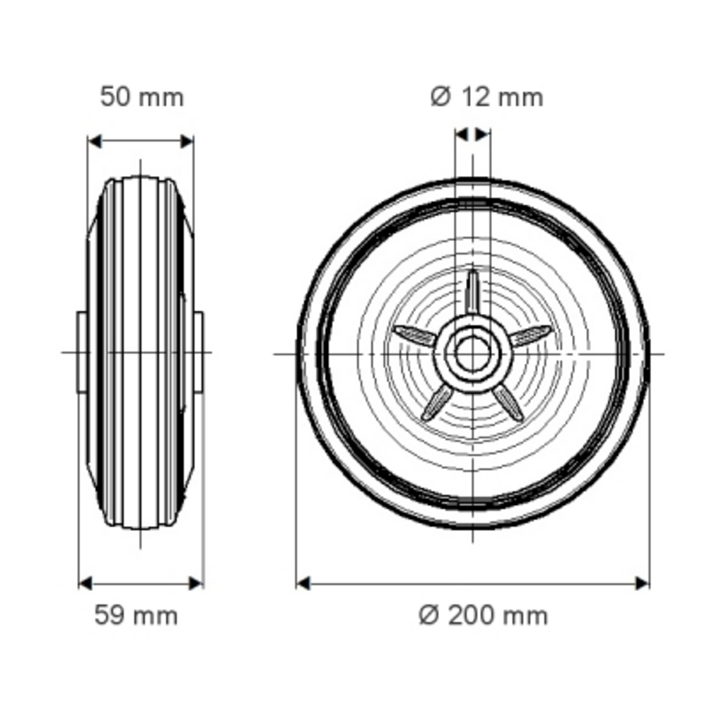 The Puretech Wheel is a robust caster component featuring a 7.87 in diameter with a 1.97 in tread width and 2.32 in hub length, constructed with a sheet steel body and solid rubber black tread material. This roller bearing-equipped wheel accommodates a 0.47 in axle hole diameter and delivers exceptional load performance with a dynamic capacity of 440.92 lb at 2.49 mph and a static load capacity of 881.85 lb, making it ideal for demanding applications including scaffolding, shopping trolleys, store fixtures and display, tool cabinets, waste disposal equipment, work benches, and transport equipment.