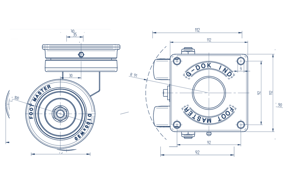 The Footmaster swivel castor is engineered for demanding industrial applications where mobility and reliability are essential. The wheel features a 100 mm diameter construction with an unmachined hub bearing system that provides robust performance whilst maintaining cost-effectiveness for high-volume applications. With an overall height of 150 mm, this castor offers optimal ground clearance and manoeuvrability for various equipment configurations. The dynamic load capacity reaches 310 kg at speeds up to 3 km/h, making it suitable for transporting heavy machinery and equipment across workshop floors. This versatile castor is specifically designed for machine construction, scaffolding systems, store fixtures and display units, transport equipment, and work benches, where dependable swivel action and substantial load-bearing capability are required for professional industrial environments.