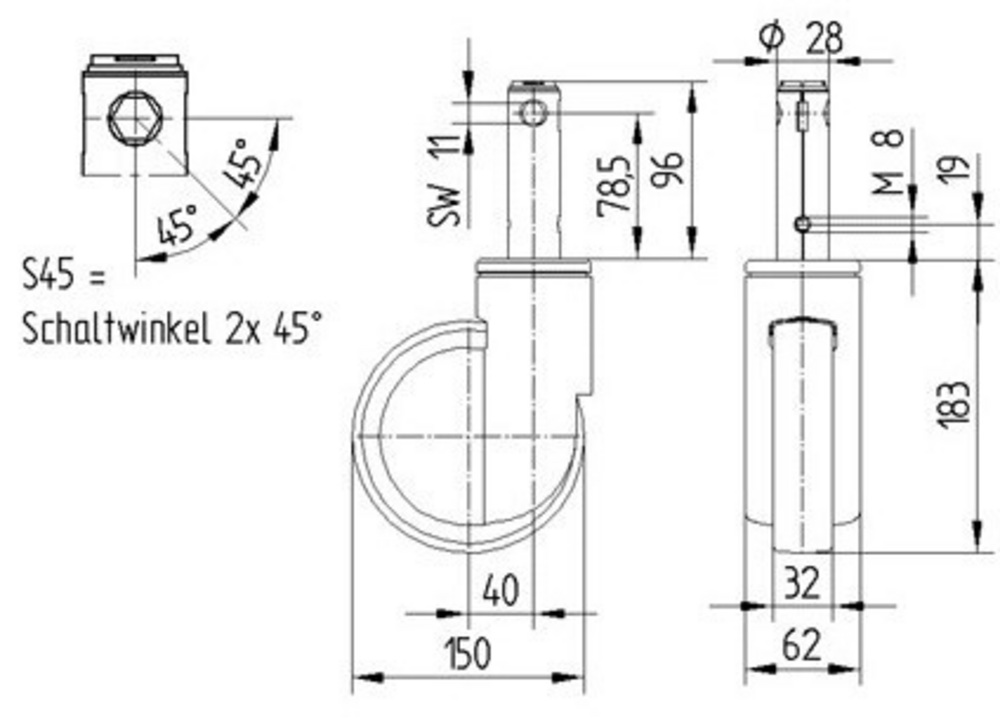 The Integral is a swivel castor with central, total or directional lock, featuring a stem with cam hole for profile bars fitting system. The housing is constructed from medium steel sheet and incorporates a precision ball bearing swivel bearing for smooth operation. The wheel comprises a polyamide body with injected polyurethane tread material, supported by precision ball bearing for enhanced durability and performance. With a wheel diameter of 150 mm, the castor has an overall height of 183 mm. The load capacity specifications include a dynamic load rating of 150 kg at speeds of 3 km/h and 150 kg at 4 km/h, whilst providing a static load capacity of 450 kg. This castor is specifically designed for demanding medical applications including anaesthesia carts, C-arms, CT scanners, MRI, X-ray equipment, care beds, dialysis carts, hospital beds, nursing and retirement homes, stretchers, and ultrasound equipment.
