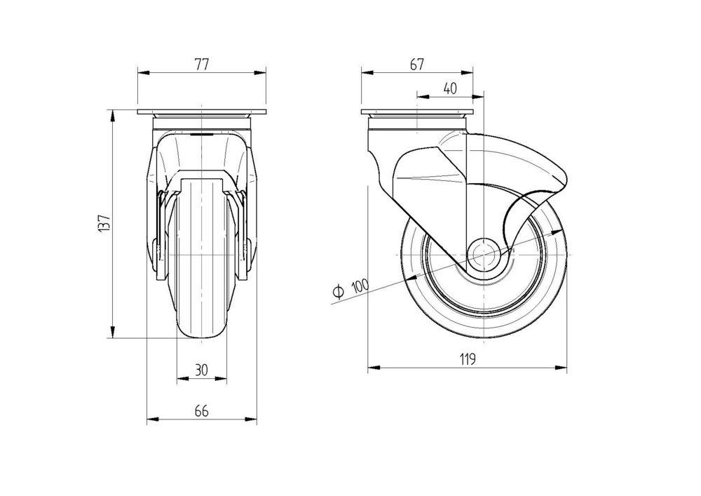 Swivel castor 100 mm