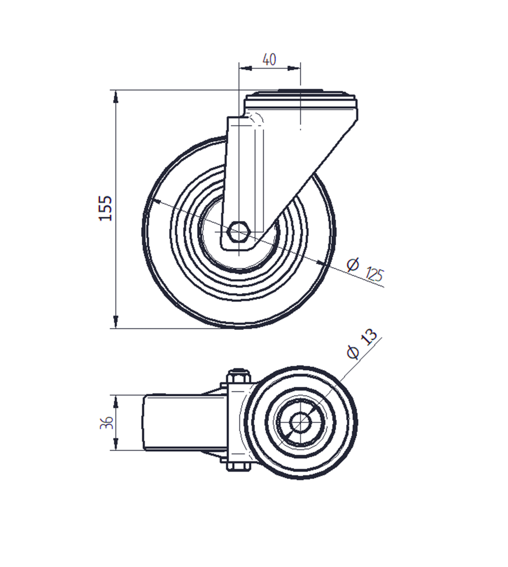Swivel castor 125 mm