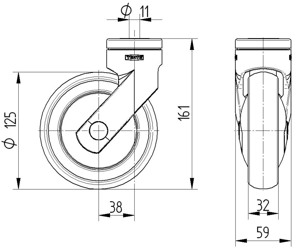 Swivel castor 125 mm