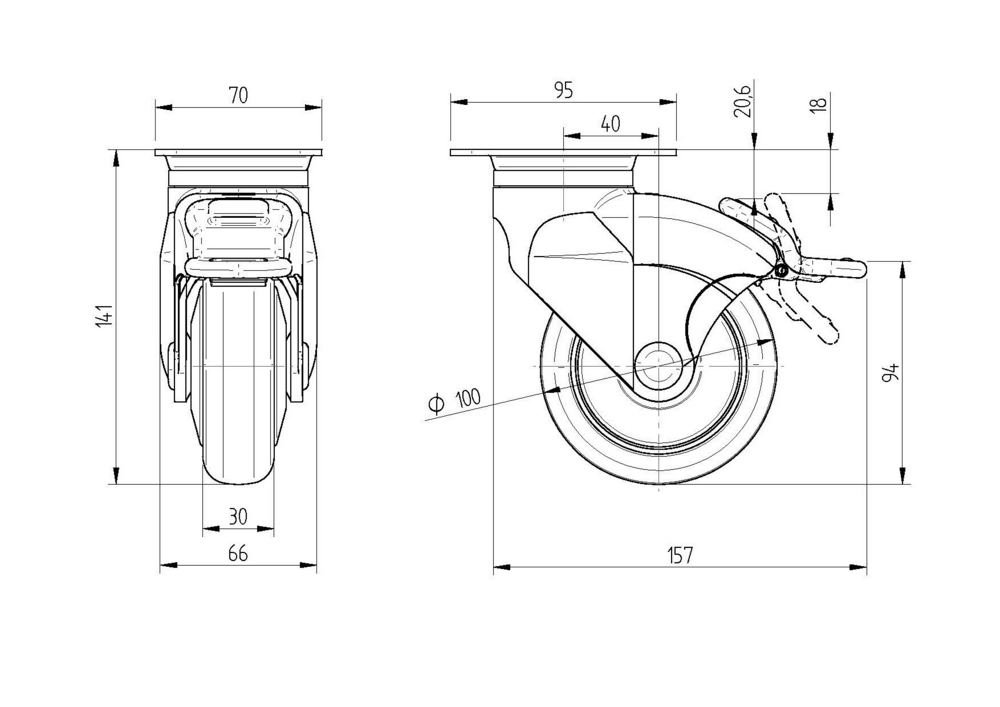 Swivel castor with total lock 100 mm