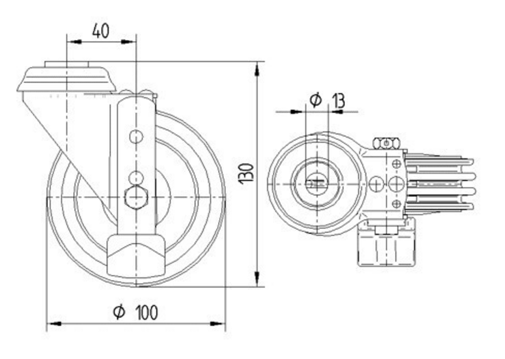Swivel castor with total lock 125 mm
