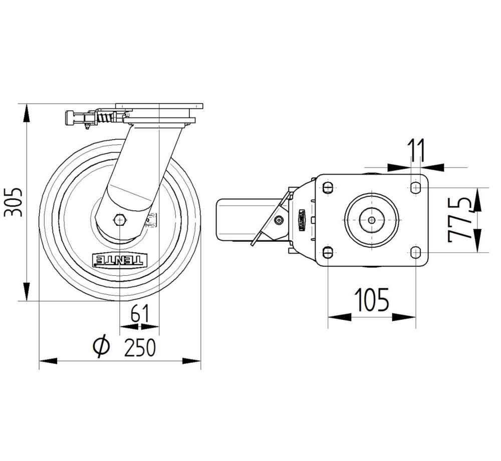 Rueda giratoria con Freno direccional 250 mm