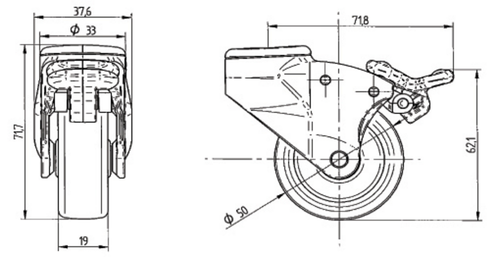 Rueda giratoria con Freno de rueda 50 mm