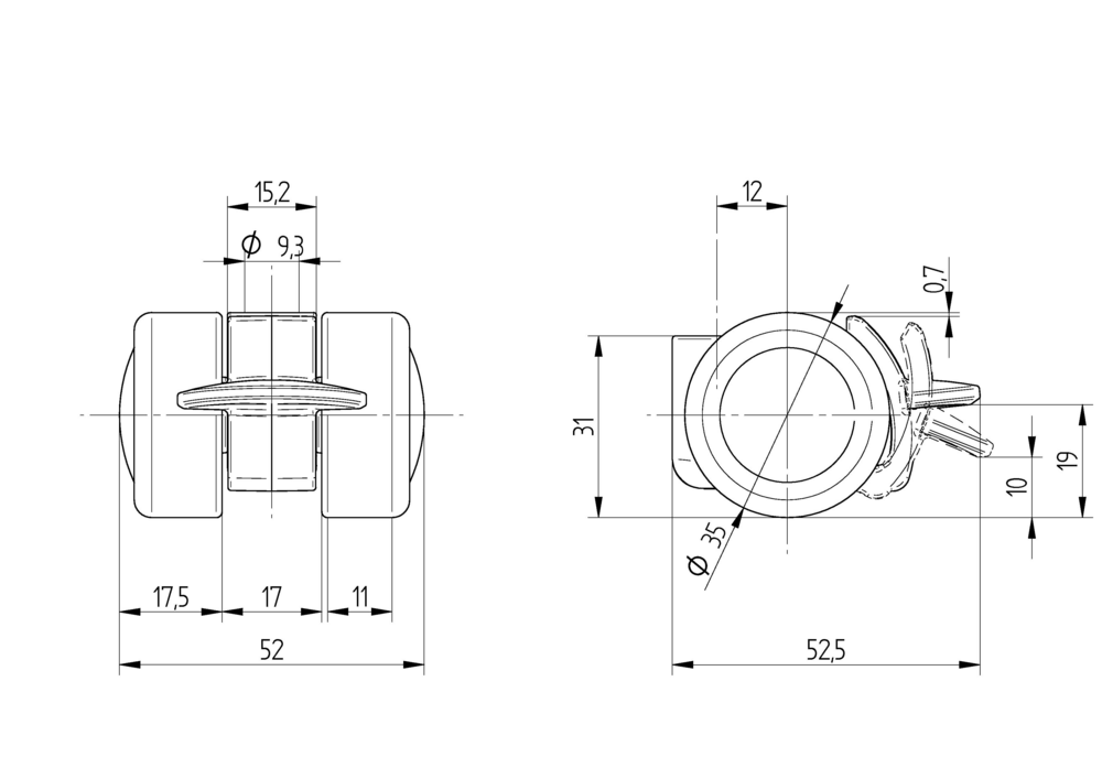 Rueda giratoria con Freno de rueda 35 mm