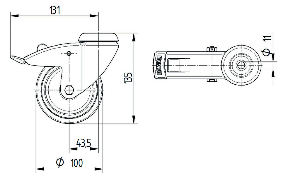 Rueda giratoria con Freno total 100 mm