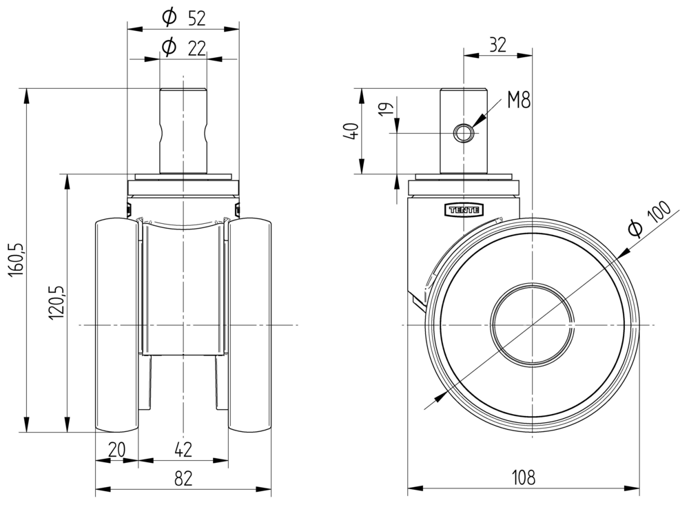 La rueda giratoria Rueda Linea incorpora una espiga sólida redonda como sistema de fijación, proporcionando una conexión robusta y confiable. La carcasa está fabricada en poliamida de alta resistencia y equipada con rodamiento de bolas de precisión para garantizar un movimiento suave y duradero. La rueda presenta un cuerpo de poliamida con banda de rodadura de poliuretano inyectado, complementada con rodamiento de bolas de precisión para un funcionamiento óptimo. Con un diámetro de rueda de 100 mm y una altura total de 120 mm, esta rueda ofrece capacidades de carga excepcionales: 120 kg de carga dinámica a velocidades de hasta 3 km/h y 240 kg de carga estática, siendo ideal para aplicaciones médicas, hospitalarias, de oficina y equipos especializados que requieren movilidad precisa y confiable.