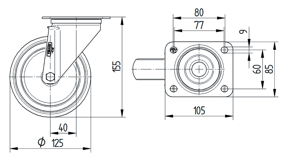 Rueda giratoria Rueda 125 mm