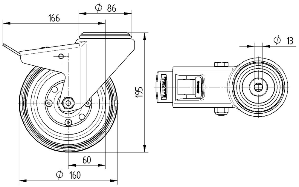 Rueda giratoria con Freno total 160 mm