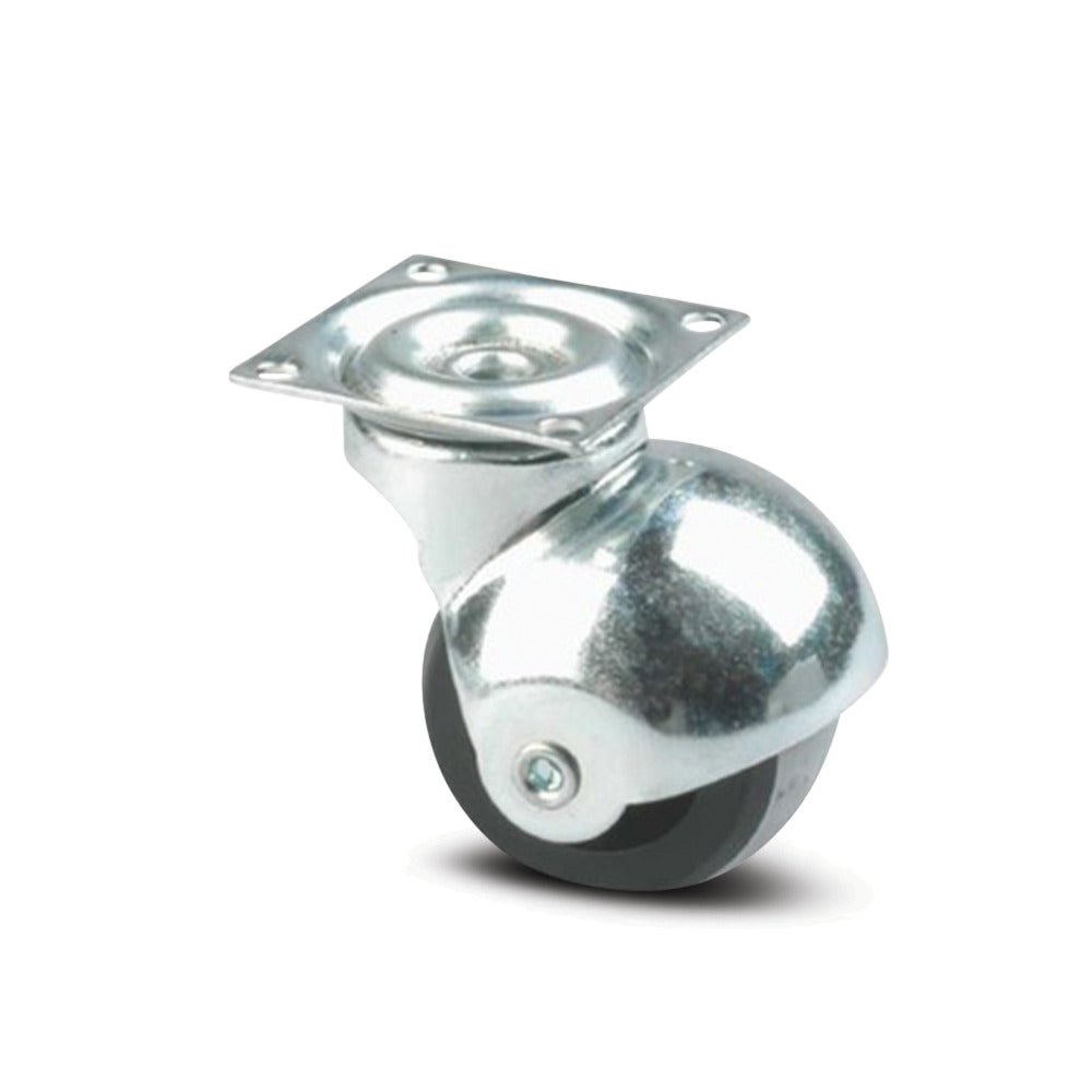 La roulette pivotante Compacta est équipée d'une platine carrée pour la fixation et dispose d'un boîtier en tôle d'acier, légère avec un roulement pivotant à simple rangée de billes assurant une rotation fluide. La roue présente un corps en polypropylène avec une bande de roulement en caoutchouc thermoplastique offrant une excellente adhérence et un roulement silencieux, complétée par un moyeu lisse pour un fonctionnement optimal. Les dimensions compactes incluent une hauteur totale de 51 mm et un diamètre de roue de 40 mm, permettant une intégration aisée dans des espaces restreints. Cette roulette supporte une charge dynamique de 20 kg à une vitesse de 3 km/h et une charge statique maximale de 40 kg, la rendant idéale pour des applications légères à moyennes nécessitant mobilité et maniabilité.