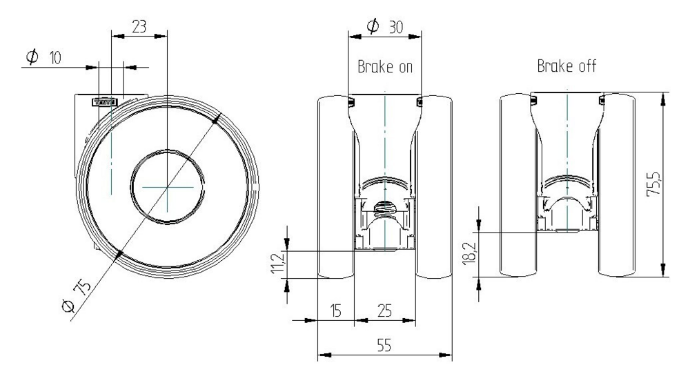 Le Linea safety est un système de blocage automatique équipé d'un trou borgne pour fixation B10. Le boîtier en polyamide intègre une tige pivotante avec une force de déblocage de 23 N et une course du ressort de 8 mm. La roue présente un corps en polyamide avec une bande de roulement en polyuréthane injecté, montée sur roulement à billes de précision, pour un diamètre de 75 mm. La hauteur totale de l'ensemble atteint 75,5 mm. Les capacités de charge s'élèvent à 100 kg en dynamique à 3 km/h et 200 kg en statique. Ce système trouve ses applications sur les chariots d'anesthésie, arceaux en C, scanners CT, IRM, rayons X, lits de soins, ordinateurs sur roulettes, chariots de dialyse, meubles multimédias, chariots de médicaments, équipements de mobilisation et besoins spécifiques, chariots de soins infirmiers, appareils à ultrasons et ventilateurs médicaux.
