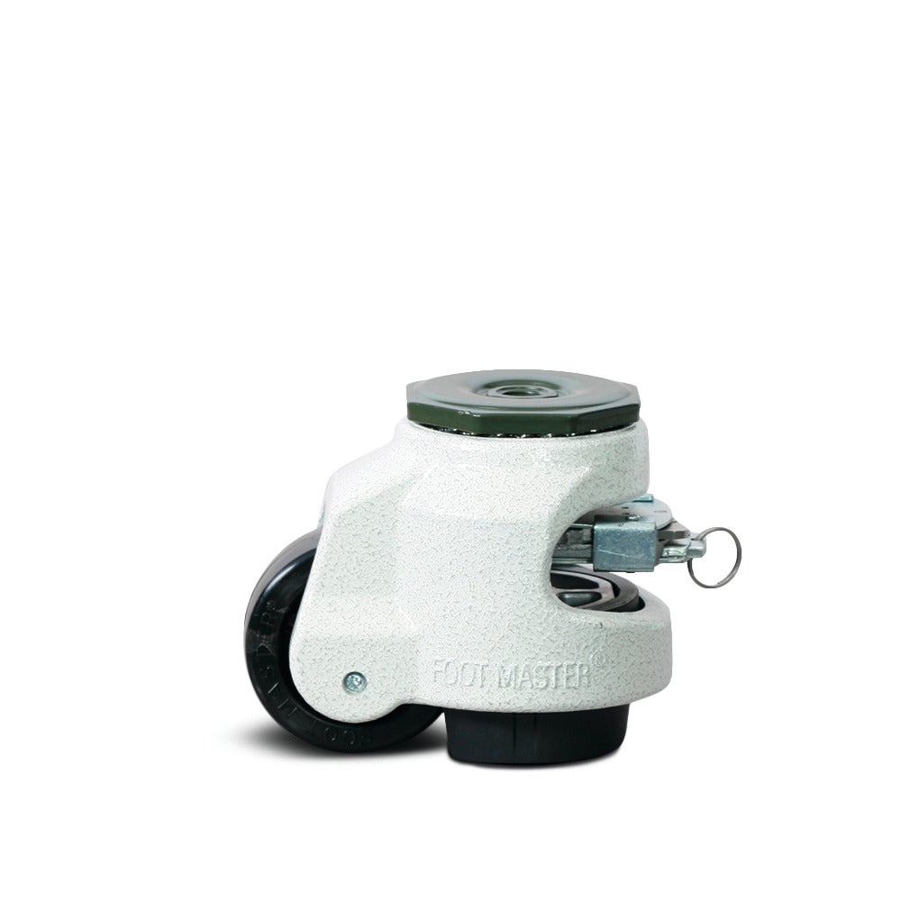 La roulette pivotante Footmaster est conçue pour offrir une mobilité optimale dans diverses applications industrielles et commerciales. Elle est équipée d'une roue de 63 mm de diamètre dotée de roulements rouleaux amortis qui garantissent un fonctionnement silencieux et une durabilité exceptionnelle. Avec une hauteur totale de 102 mm, cette roulette présente des dimensions compactes adaptées aux contraintes d'espace. Sa capacité de charge dynamique atteint 500 kg à une vitesse maximale de 3 km/h, tandis que sa charge statique supportée est également de 500 kg. Cette roulette trouve ses applications dans la construction de machines, les échafaudages, le mobilier et présentoirs de magasin, les équipements de transport ainsi que les établis, offrant ainsi une solution polyvalente pour de nombreux secteurs d'activité nécessitant une mobilité fiable et robuste.