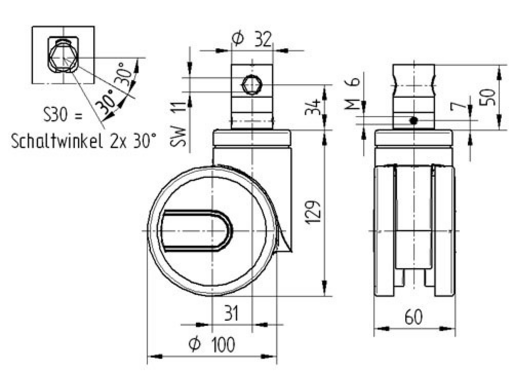 La roulette pivotante à blocage total centralisé Integral twin est équipée d'une tige courte pour roulette à blocage centralisé comme système de fixation. Le boîtier est fabriqué en tôle d'acier moyenne et intègre un roulement à billes de précision pour la rotation pivotante. La roue présente un corps en polyamide avec une bande de roulement en polyuréthane injecté, montée sur roulement à billes de précision, et mesure 100 mm de diamètre. Les dimensions générales incluent une hauteur totale de 129 mm. Cette roulette offre une capacité de charge dynamique de 125 kg à 3 km/h et 125 kg à 4 km/h, ainsi qu'une charge statique maximale de 375 kg. Elle est particulièrement adaptée aux applications hospitalières telles que chariots d'anesthésie, arceaux en C, scanners CT, IRM, rayons X, lits de soins, lits d'hôpital, maisons de retraite, robots chirurgicaux, tables d'opération et appareils à ultrasons.