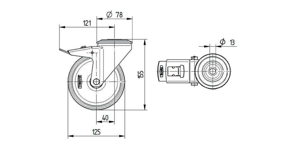 Roulette pivotante 125 mm
