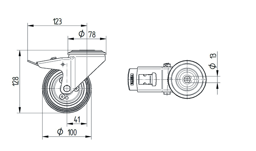 Blocco totale per bloccare simultaneamente la ruota e la parte girevole