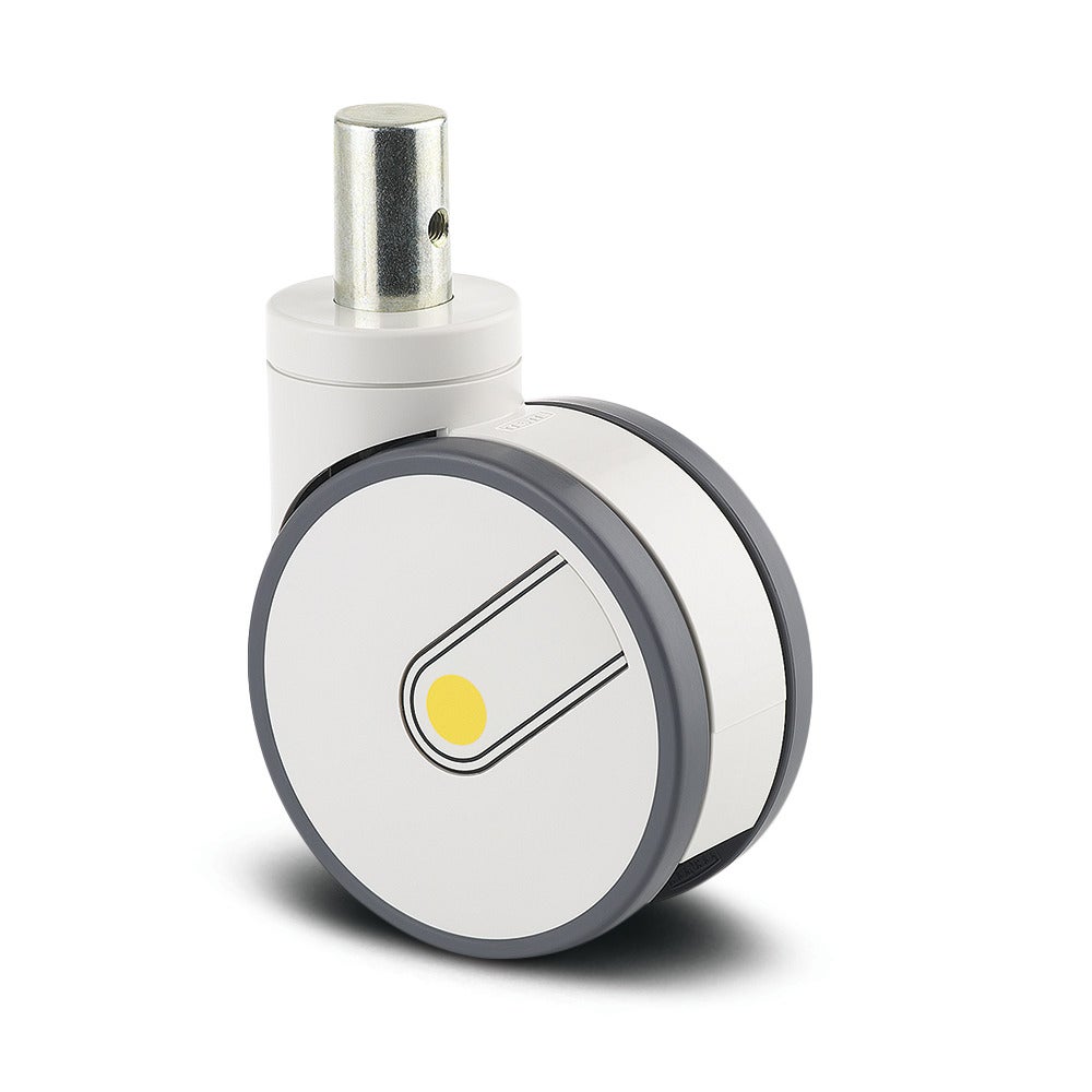 Integral twin自在キャスターは、ソリッドステム、丸型のフィッティングを採用しており、病院用ベッドメーカーは洗浄可能なベッドのフィッティングエリアを封止する必要があります。ハウジングはスチール、中量系材料で構成され、精密ボールベアリングによる旋回軸受を備えています。ホイールは直径125mmで、ポリアミド製のボディにポリウレタン、樹脂成型、導電性のトレッド材を使用し、精密ボールベアリング、封止の軸受を搭載しています。全高は150mmです。動荷重は速度3km/hで125kg、速度4km/hで125kg、静荷重は250kgに対応します。麻酔カート、Cアーム・CTスキャナー・MRI・X線、ケアベッド、病院用ベッド、病院、介護施設・高齢者ホーム、手術用ロボット、手術台、超音波装置などの医療機器に適用されます。